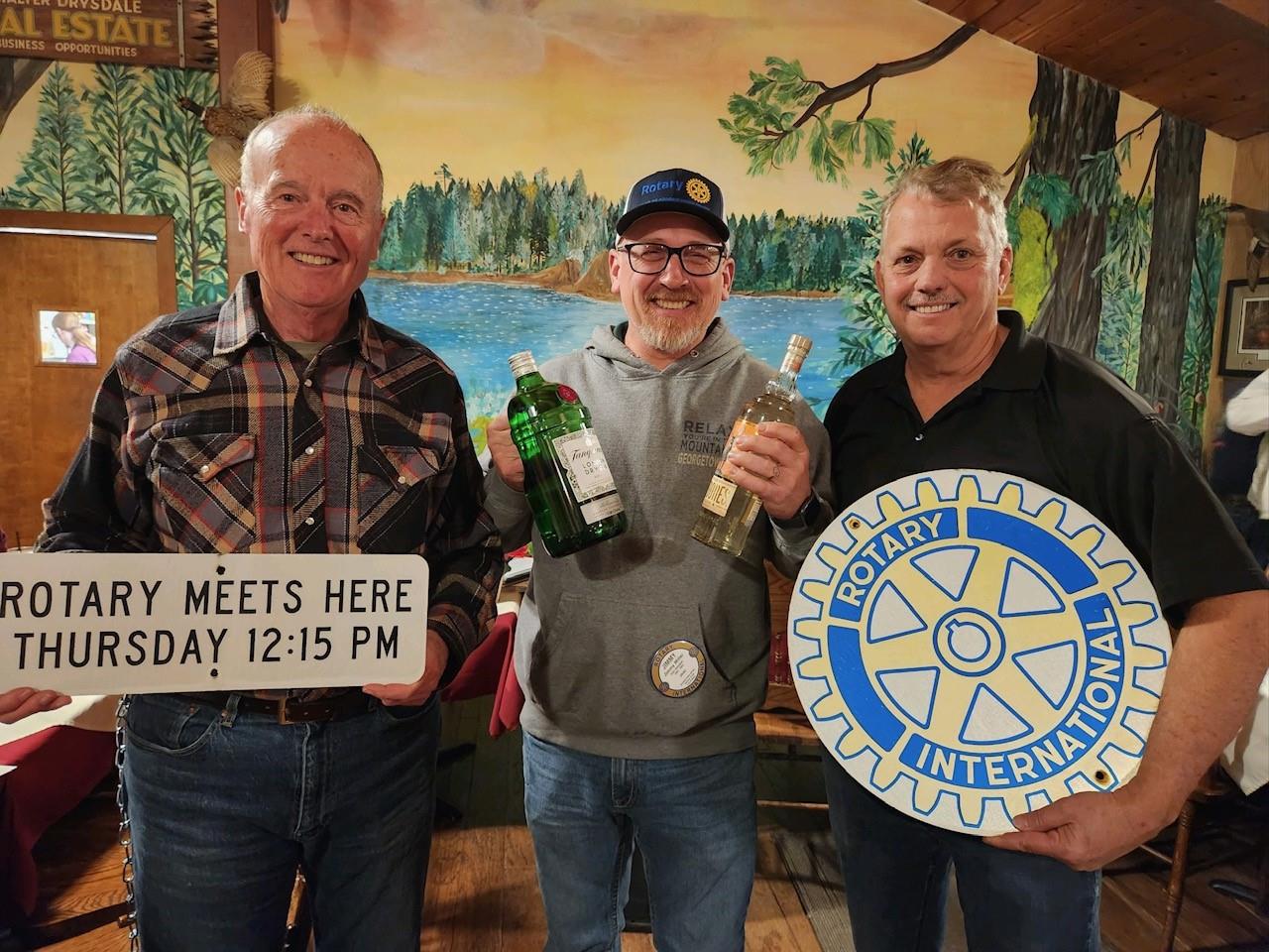 In keeping with their decades-long reputation of absconding with other clubs’ bells, banners , etc. for ransom, members of the Georgetown lifted a Rotary sign from the country club during the Foundation dinner on March 7. Gary Clarke and Don Fuller visited the Georgetown club for their Wednesday dinner meeting and traded some booze for the sign. The Georgetown perpetrators were gracious enough to visit our luncheon on March 28 and reinstall the sign.
